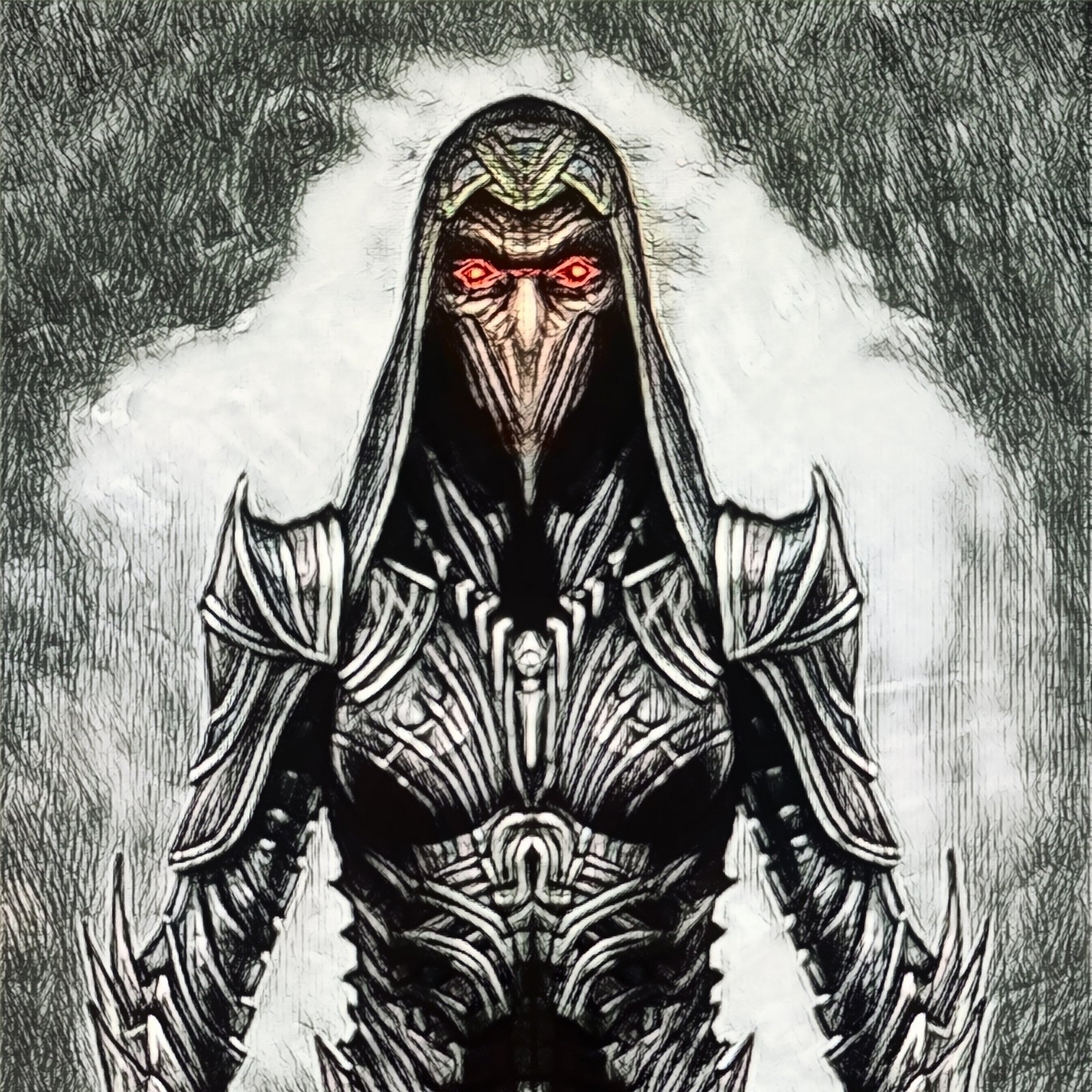 Her hair, if you want to call it that, is more like dirty grey eel-like dreadlocks with beady black eyes like rats. She has white skin so transparent you can see her veins and muscles under the surface. She exudes a wake of static electricity.