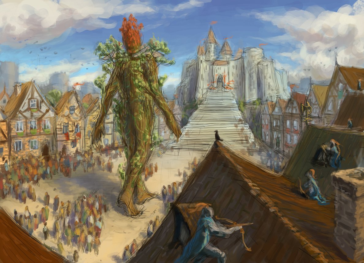 As Gollup walked through the streets of Chélsa, the people of the town cheered like he was a celebrity, but that was nothing compared to the way the two hounds were being celebrated. As Tegwin and Degwin walked alongside Gollup, the townspeople tossed flowers at their feet and reached out to touch them as if they were royalty.